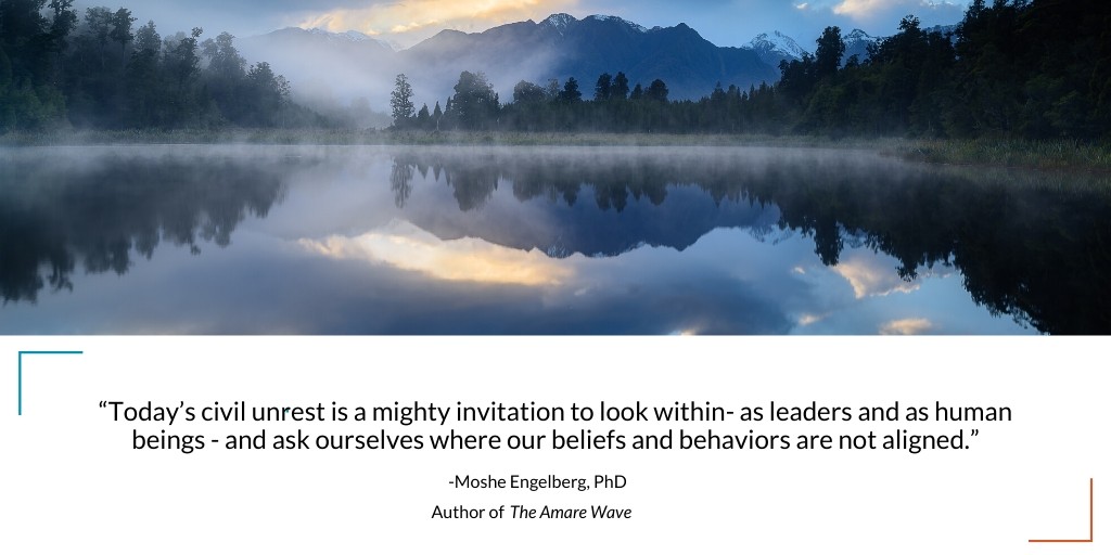 Today’s civil unrest is a mighty invitation to look within- as leaders and as human beings – and ask ourselves where our beliefs and behaviors are not aligned. Only then we and our companies can make amends for the harm done, and come up with ways to get back into alignment and stay there.